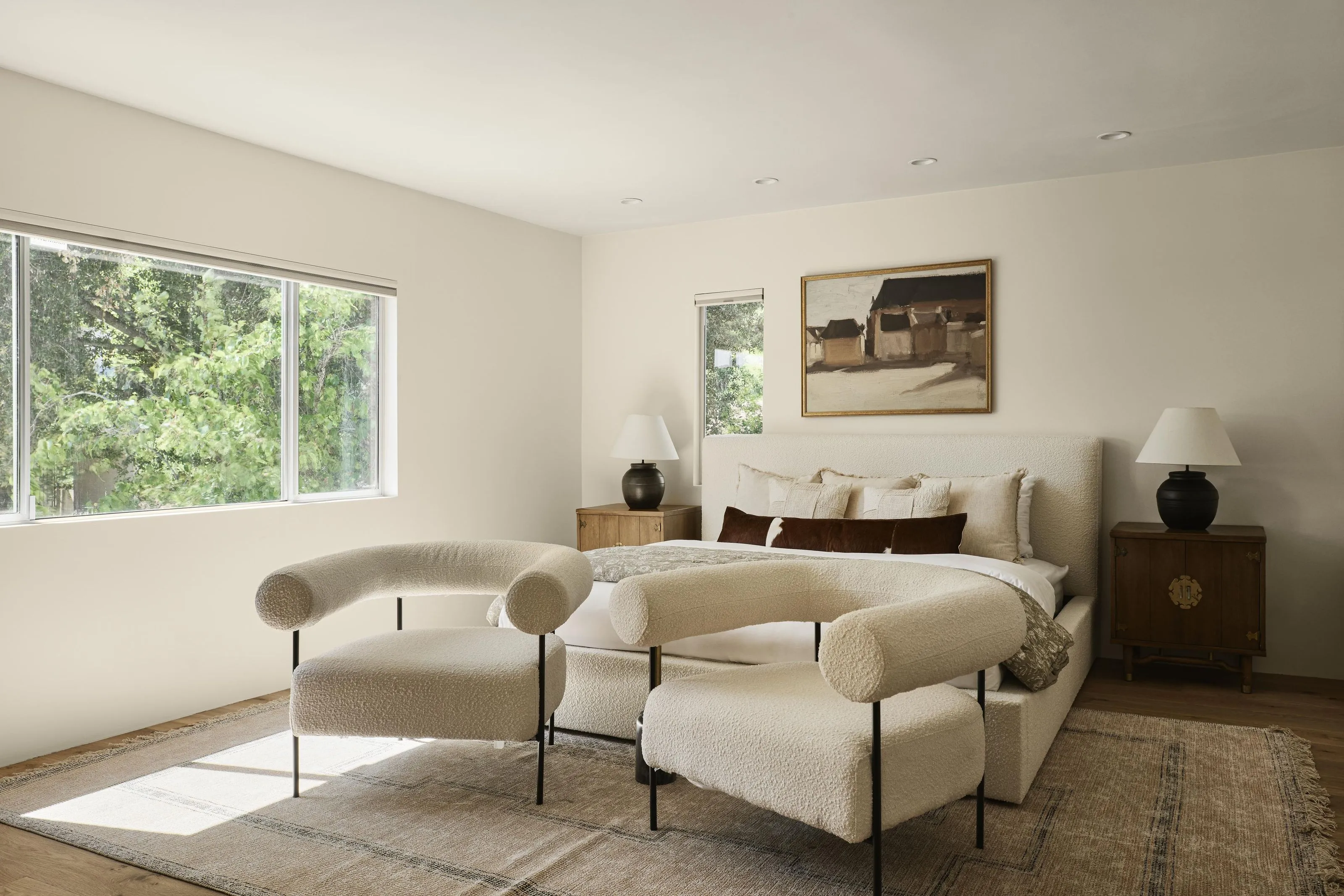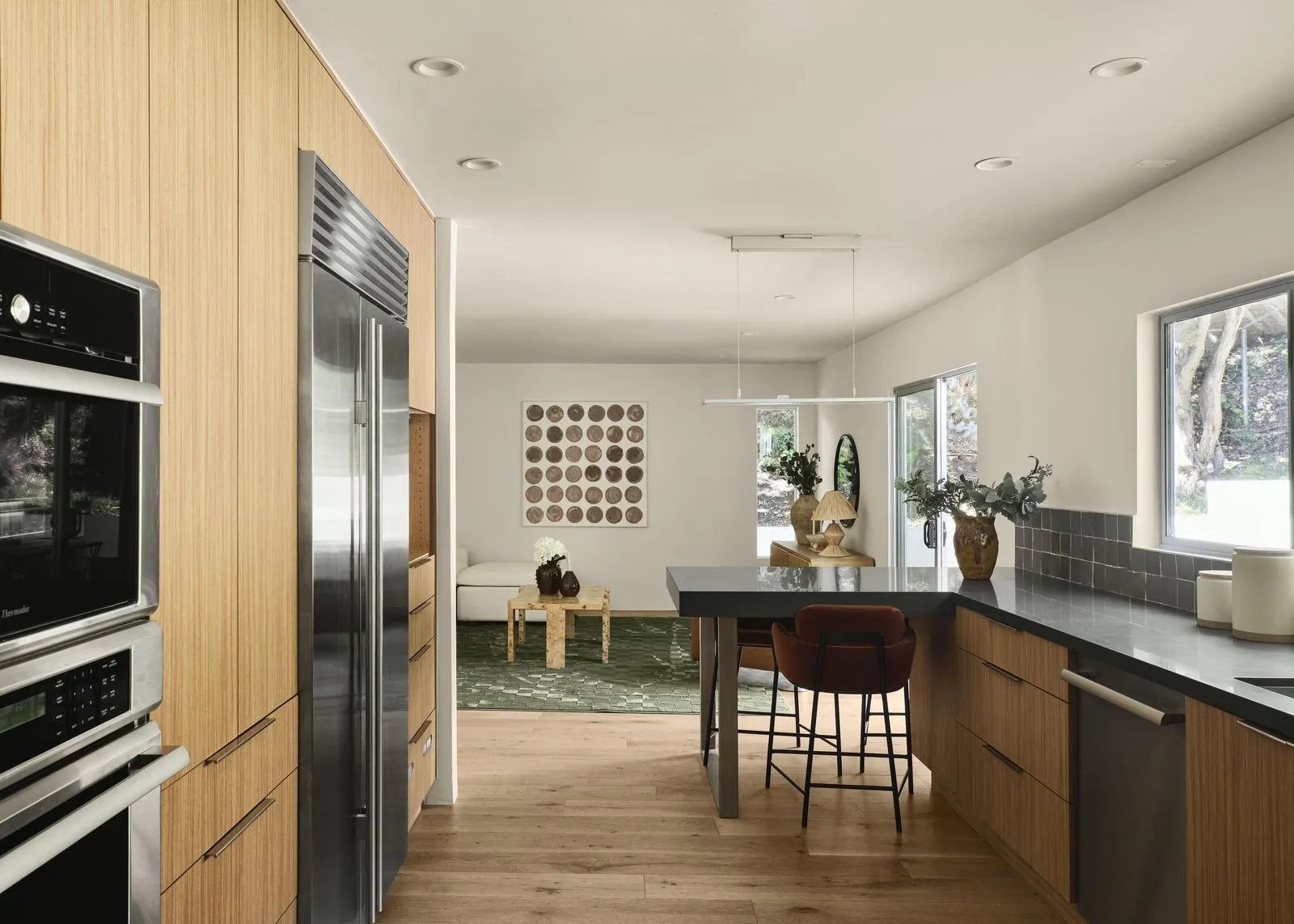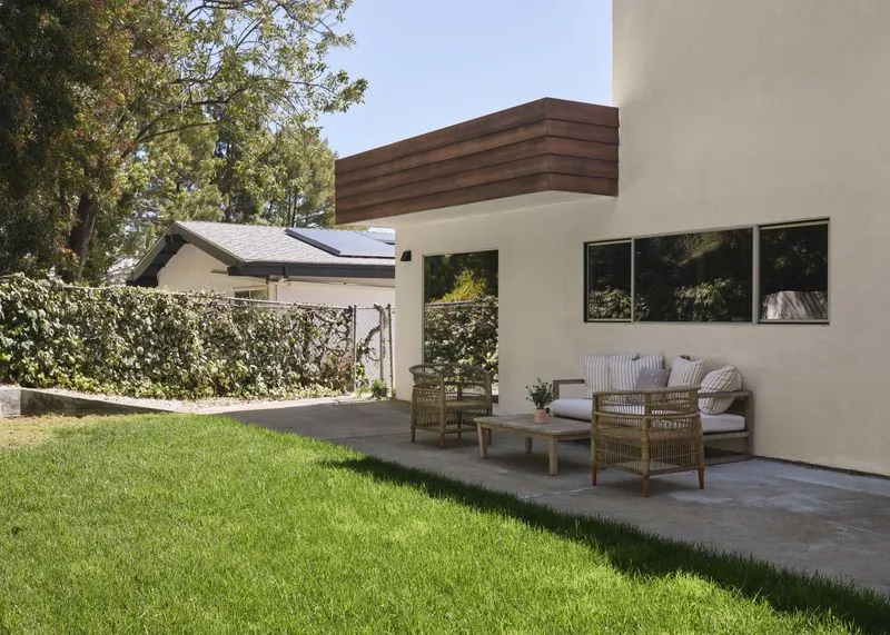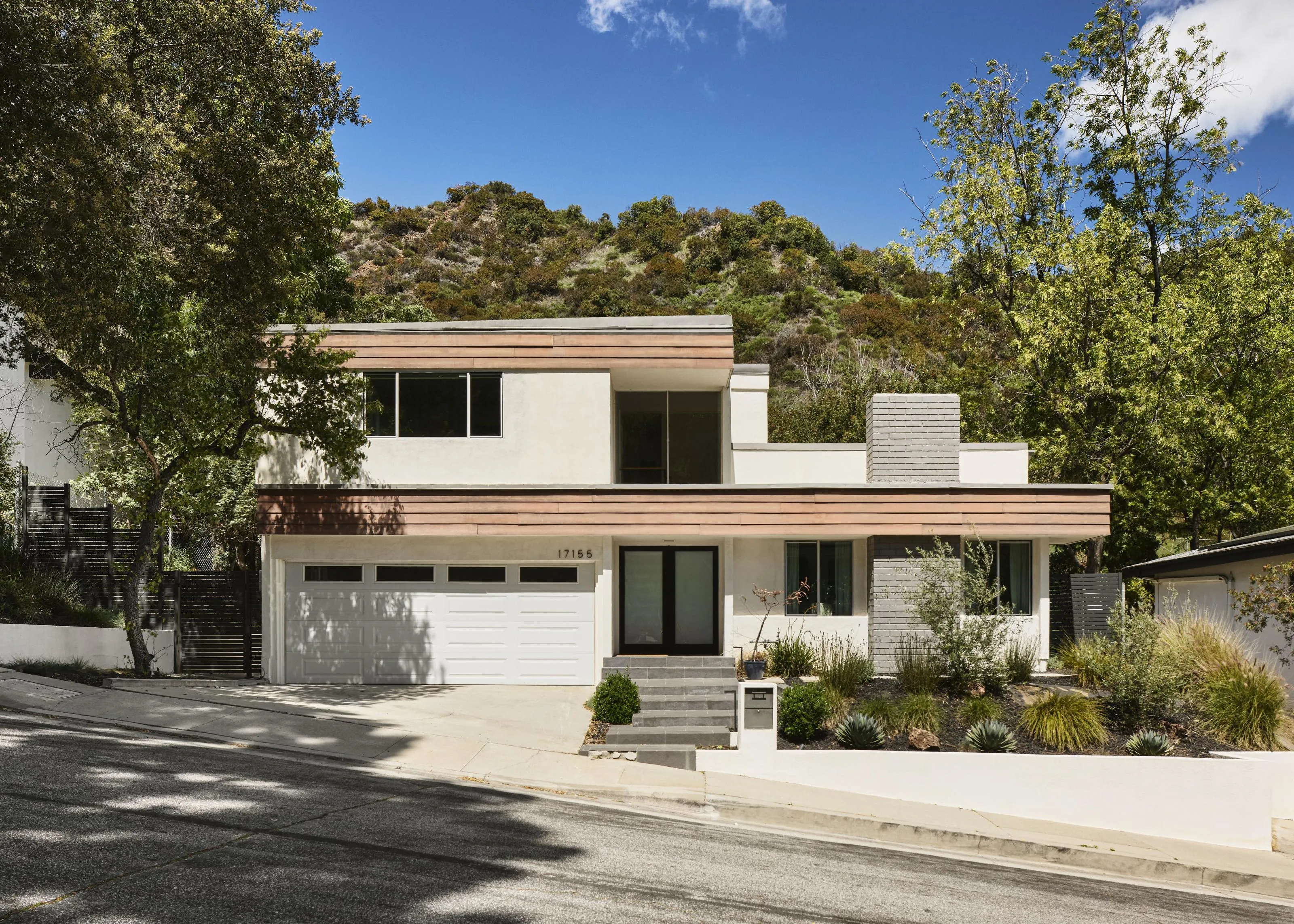 Don Saxon Palmer A.I.A. (1966) Set at the end of a quiet, tree-lined cul-de-sac in the coveted hills of Encino, 17155 Clemons Drive is one of the original masterfully crafted mid-century modern residences by renowned builder Harlan Lee, benefiting from the extra-deep, double-sized 16,000+ lots. A study in light and proportion, the home opens to a sun-drenched, open-concept interior where soaring ceilings and a sculptural tiled fireplace anchor the living space with understated sophistication. The chef's kitchen appointed with Thermador appliances, a Sub-Zero refrigerator, and honed Quartzite stone countertops flows effortlessly into the inviting family room, creating a seamless environment for entertaining and everyday living. A floating staircase leads to the tranquil primary suite, featuring a custom walk-in closet and an elegantly updated bath. Moments from the award-winning Lanai Road Elementary and a network of scenic hiking and biking trails, this thoughtfully designed home offers effortless access to both the serenity of the hills and the cultural energy of Ventura Boulevard.