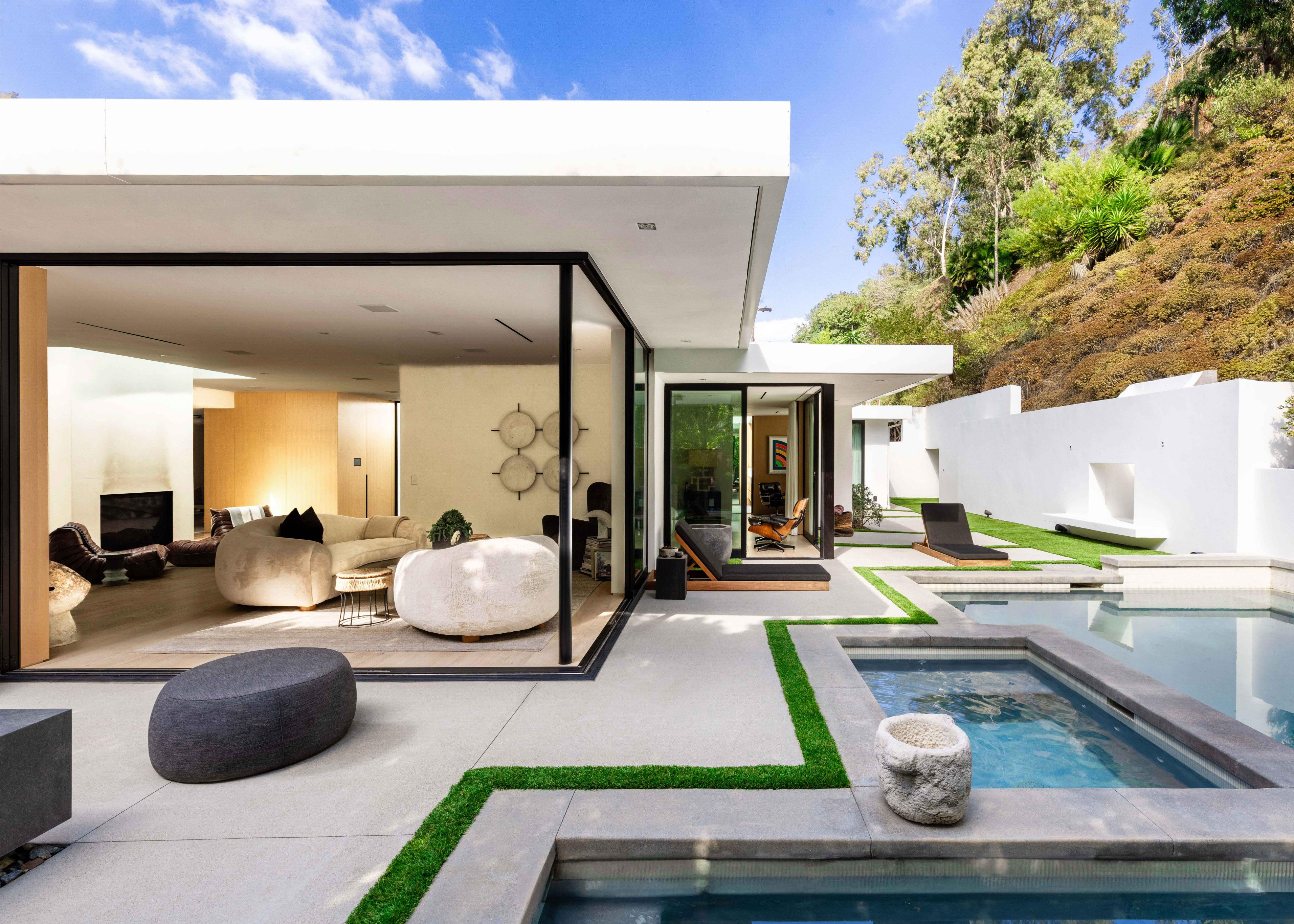 Tucked away just north of Sunset and the iconic Beverly Hills Hotel, 1952 North Beverly Drive is a sleek, single-story residence that balances refined international design with effortless California living. Designed by Yoram LePair (a Gehry Partners alum) and illuminated to perfection by noted lighting designer Mark Raissen (Sunset Tower Bar, San Vicente Bungalows), the home is defined by refined silhouettes, an abundance of natural light, and fluid indooroutdoor connection. Expanses of floor-to-ceiling glass, meticulously detailed rift-oak paneling, and wide French oak planks in generous proportions set a sophisticated tone. The kitchen is conceived for openness and connection, inviting conversation and versatile entertaining with a large, centralized dining area as a natural gathering space for shared meals. Appliances include premier selections from Sub-Zero, Wolf, and Miele, along with wine refrigeration for 300 bottles and a full-service wet bar detailed in blackened steel, ebony millwork, and honed Saint Laurent marble. A formal living space orients toward the yard and pool, capturing views of the softly rising hillside that extend toward the gated entrance of Franklin Canyon Park. The primary suite offers an expansive walk-in wardrobe with thoughtfully designed dressing areas, and a luxurious bath finished in stone and tailored millwork, with sleek pocket doors that blur thresholds with graceful simplicity. A secondary bedroompresently configured as a denserves as a retreat for entertainment and quiet conversation, with a discreetly integrated full bath concealed behind sculpted oak walls. Outdoors evoke the atmosphere of a boutique hotel, with a firepit lounge framed by teak sofas, a pool and spa detailed in muted Japanese tile, and a large fireplace thoughtfully incorporated into a bespoke garden wall. Multiple SONANCE speaker systems complete the setting, creating a fully immersive environment for an activated outdoor lifestyle. Intelligent living is defined by Control4, Lutron, and AI-driven automation. The detached guest casita (fully permitted with its own address at 1954 North Beverly) offers the ultimate in private accommodation, with a stone-clad bathroom, custom wardrobe, concealed refrigeration, and dedicated storage. A separate laundry/tech room includes additional wine refrigeration and generous organizational space. The restrained exterior faade blends discretion and design, softened by native landscape architecture from Elysian Landscapes. Covered parking is secured behind an 8-foot louvered steel gate, maintaining the residence's understated presence.