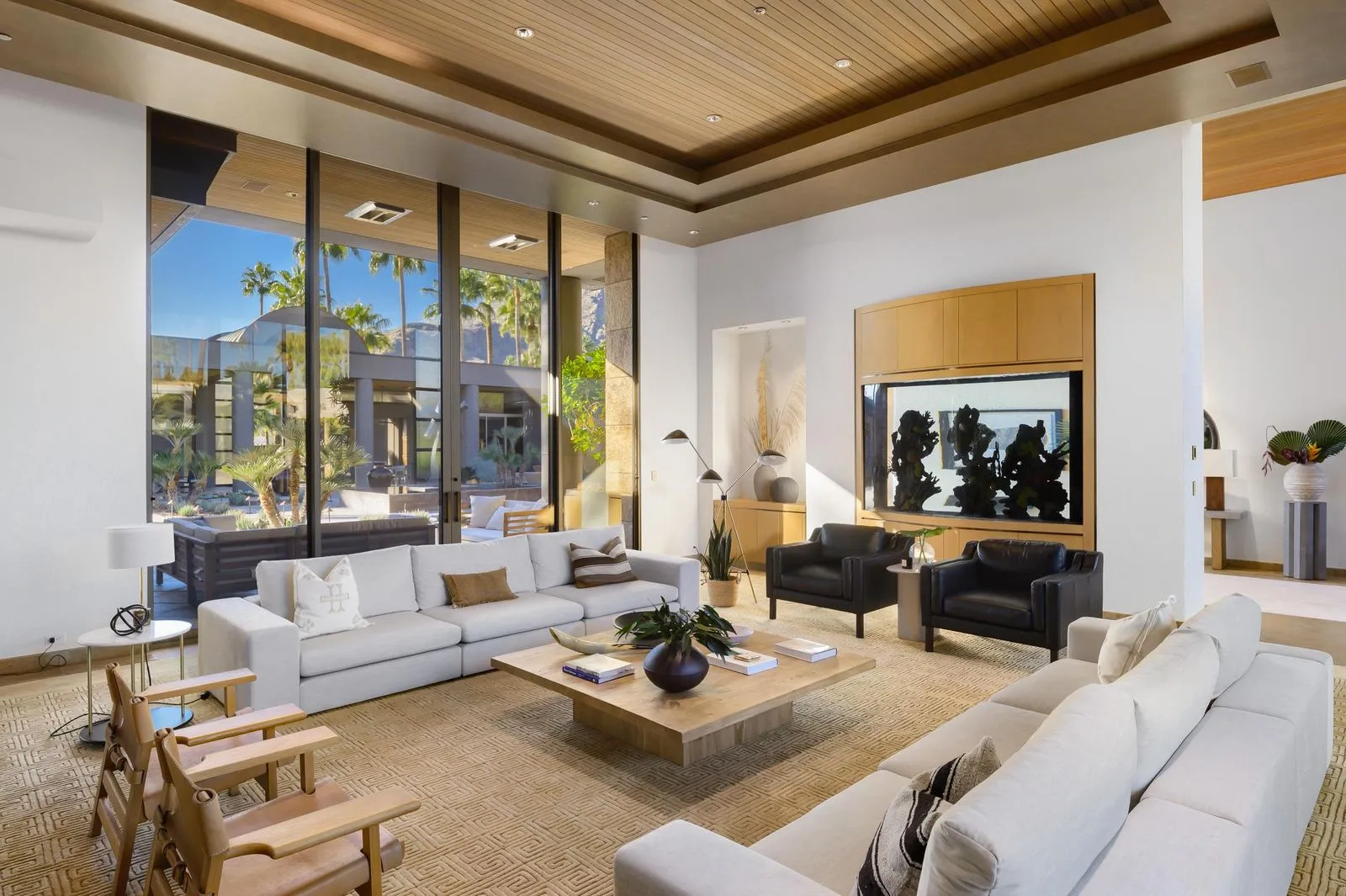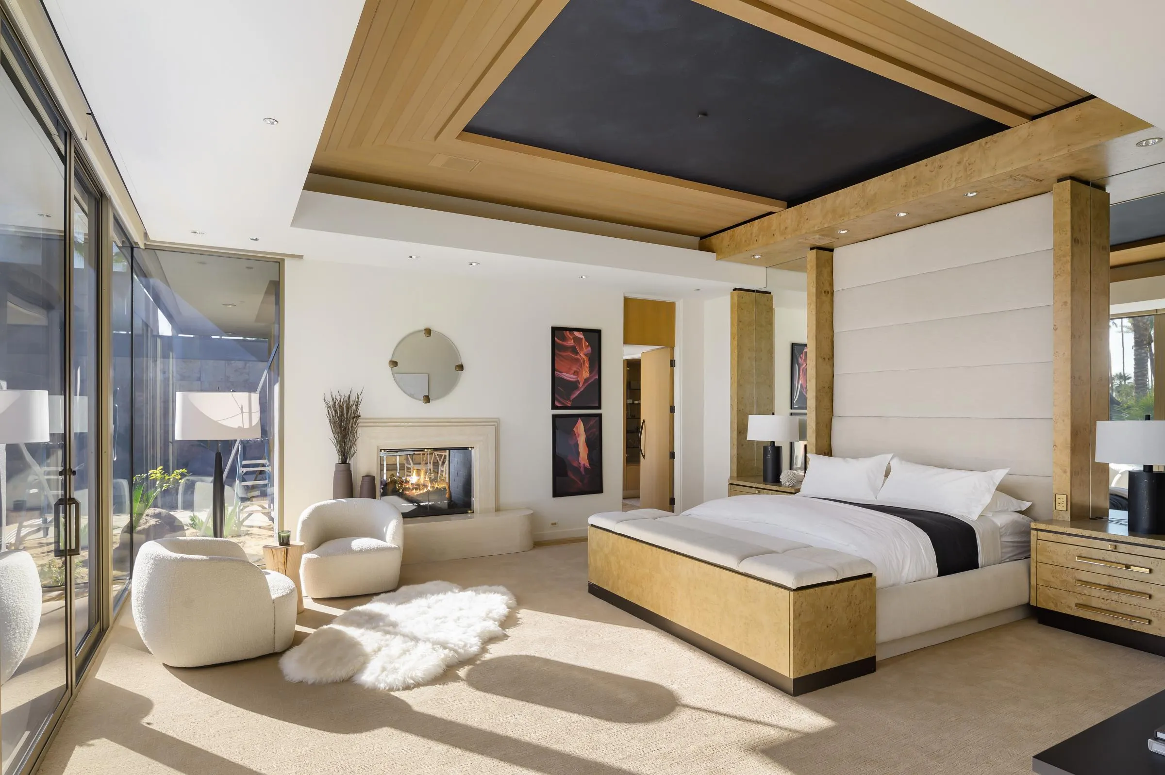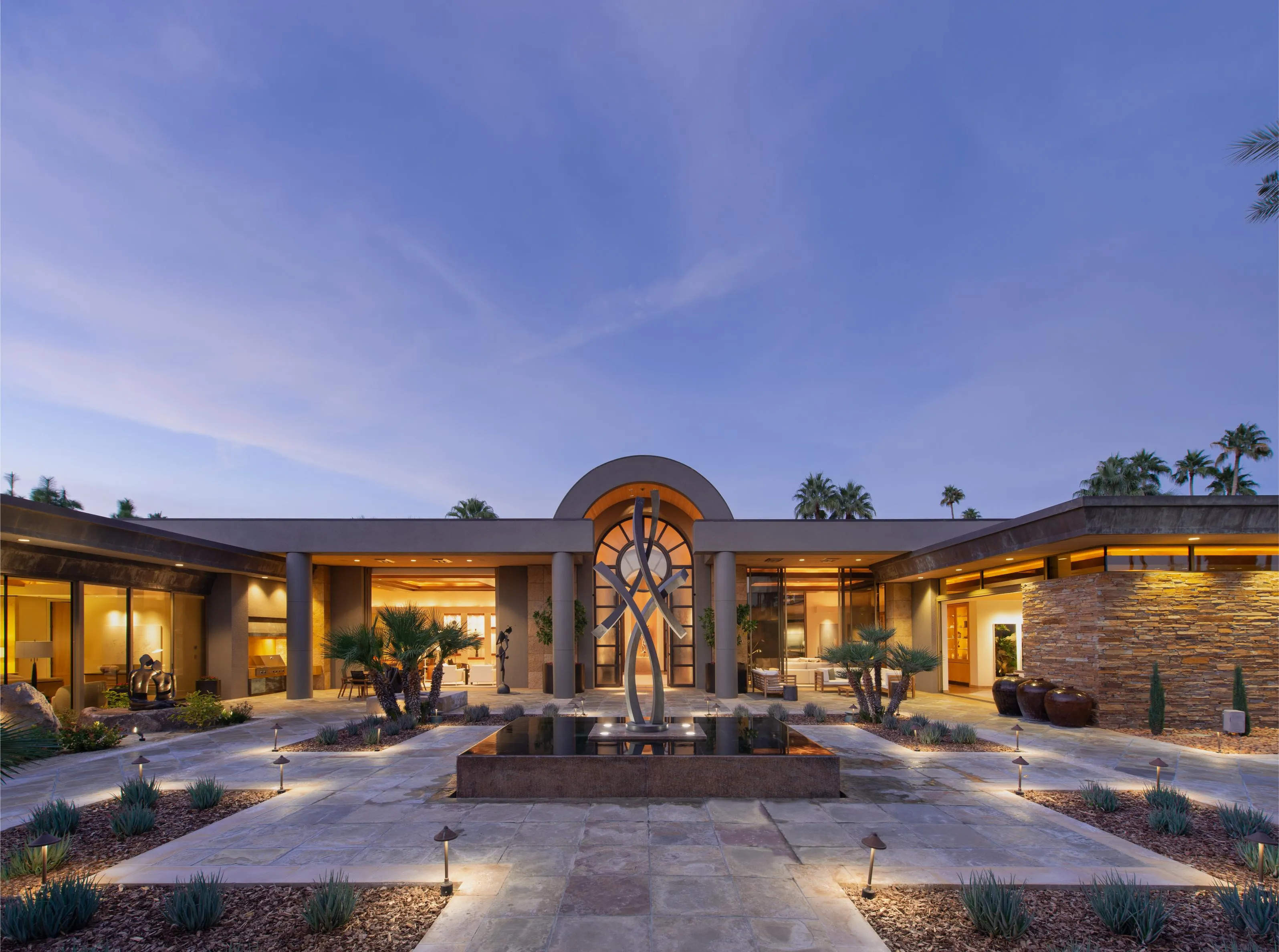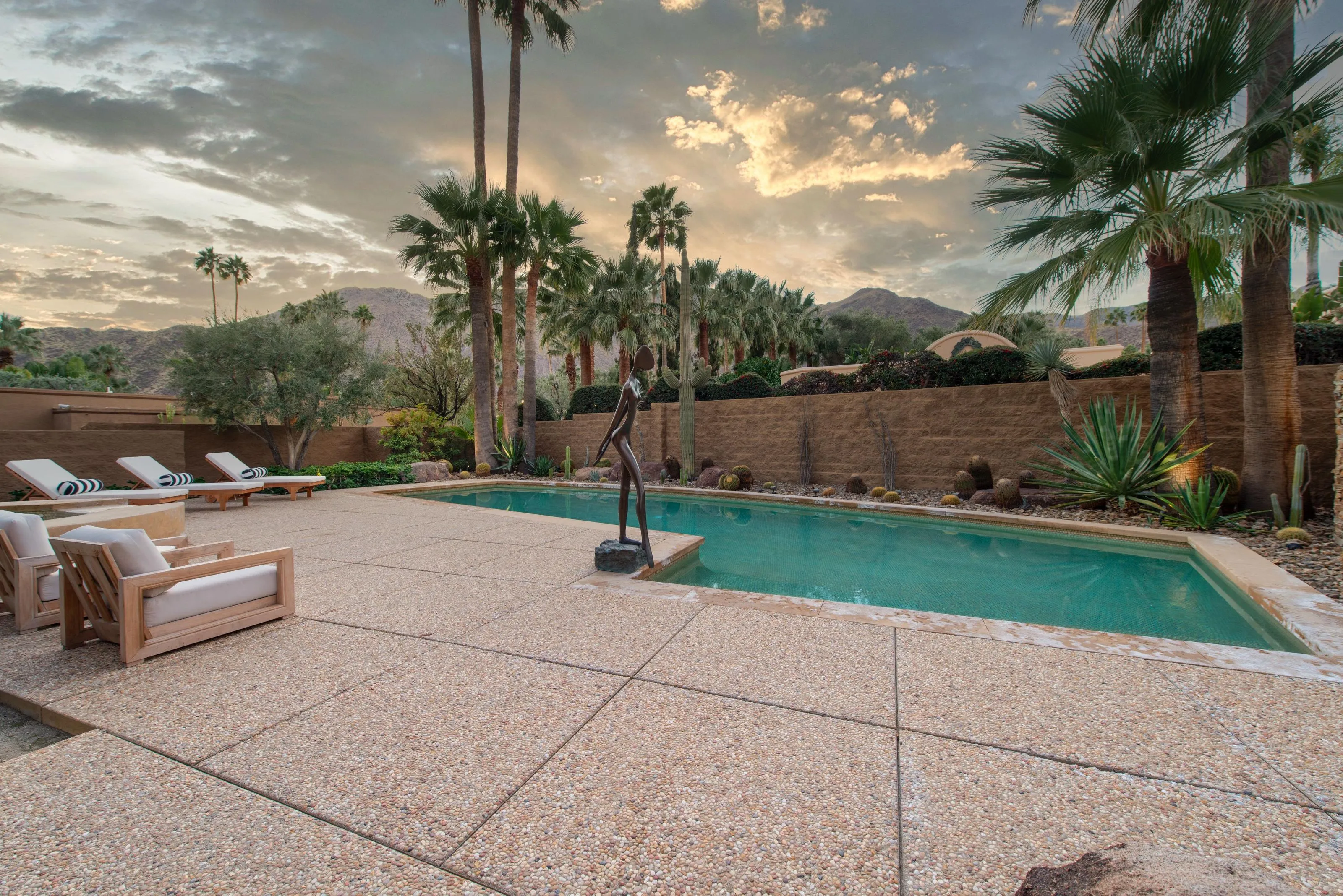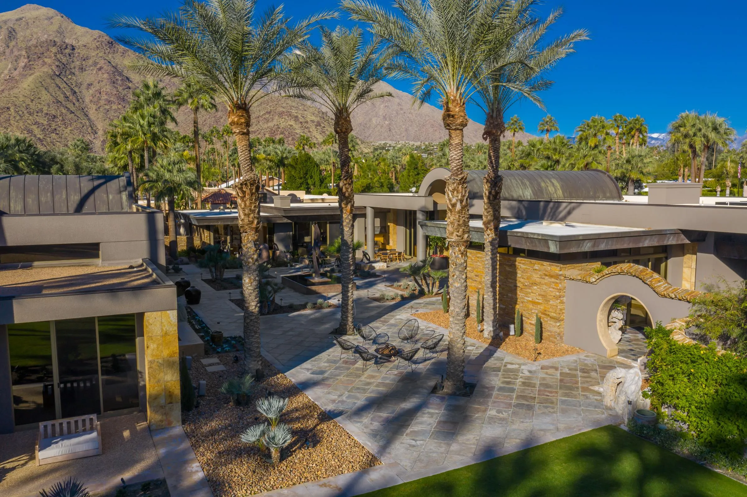 This extraordinary 1.5-acre estate is unparalleled in its distinctive style and resort-caliber amenities. Designed to celebrate light and art, it is truly irreplaceable, an oasis of tranquility that includes a one-of-a-kind five-bedroom residence, caretaker's quarters, and two chic one-bedroom guesthouses. Surrounded by towering palms, the home was constructed by superior craftsmen, has been thoughtfully rejuvenated, and boasts striking lines, angles, and details from around the world. It is an ideal venue for entertaining, with a climate-controlled wine cellar, a bar, and living and dining areas where glass pocket doors blur the line between indoors and out. The idyllic grounds offer sunny patios, numerous water features, fruit trees, swaths of emerald lawn, a koi pond enveloped by Taihu stone, and a secluded swimmer's pool and spa. The estate has been equipped with a security system, a gated motor court, a Crestron home-automation system, and an air-conditioned four-car garage.