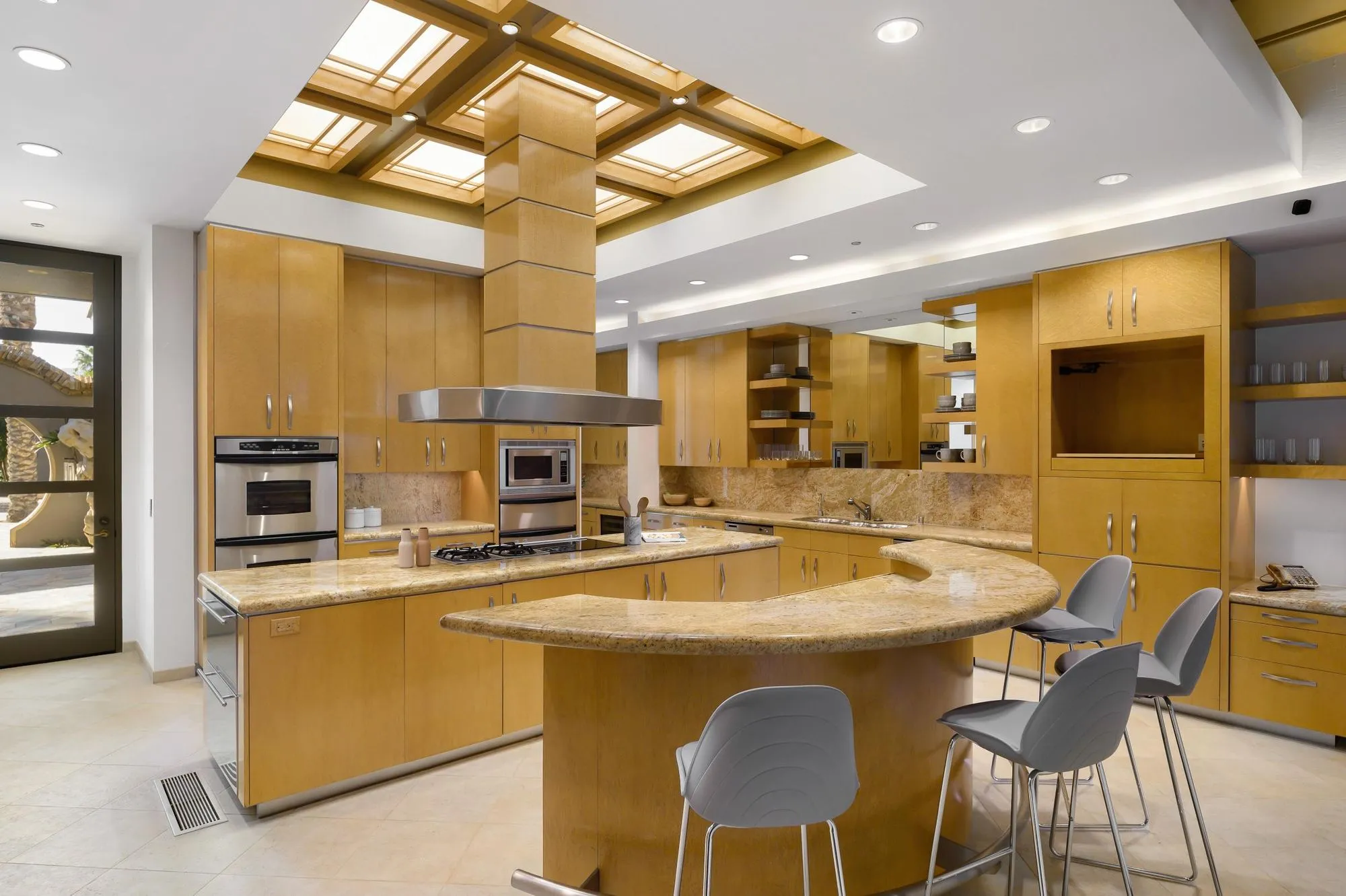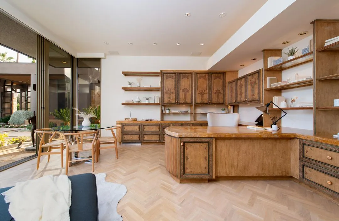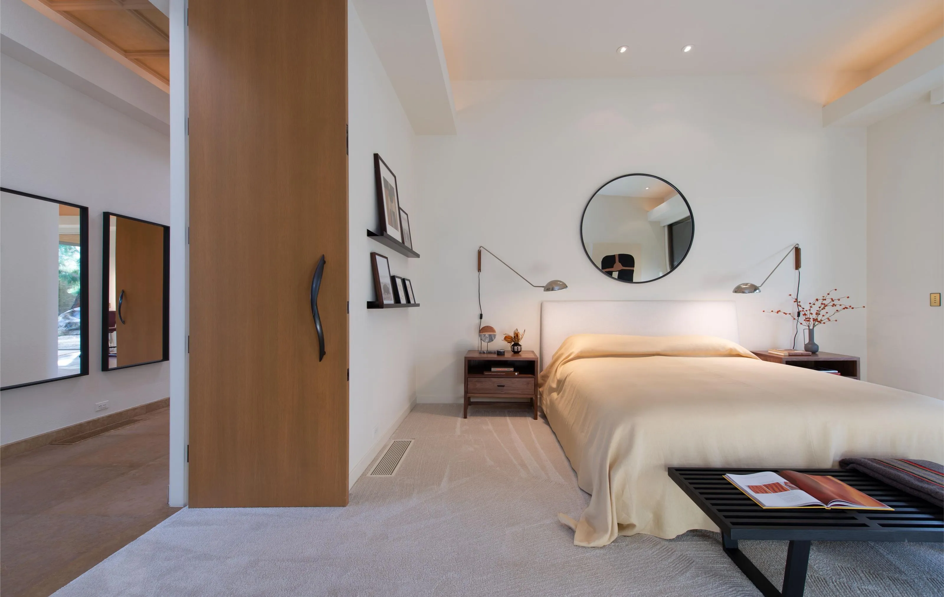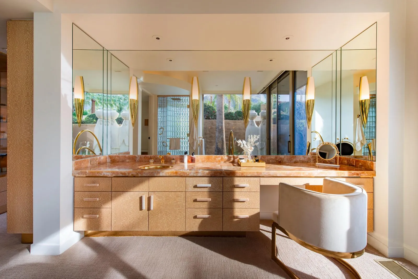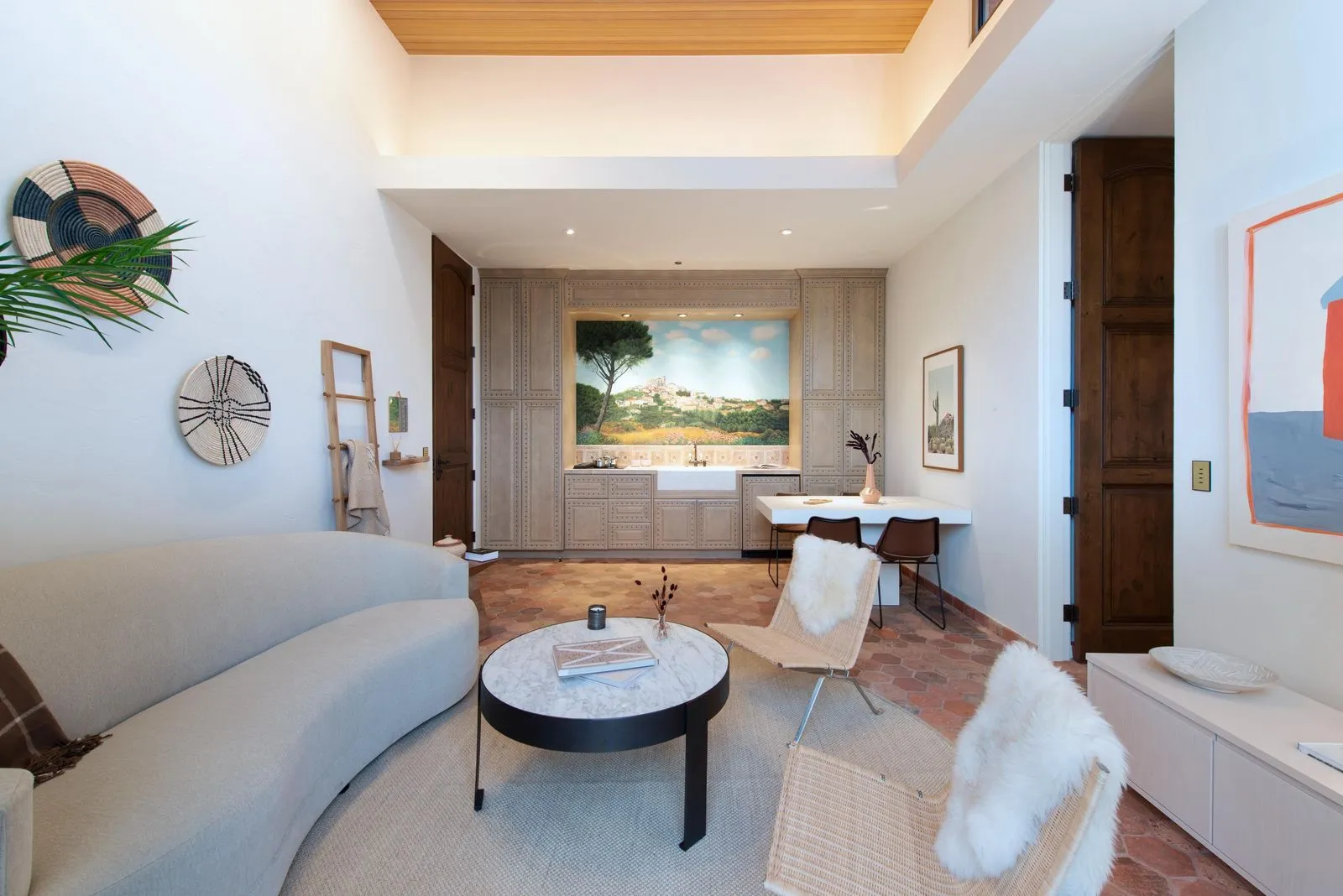 This extraordinary 1.5-acre estate is unparalleled in its distinctive style and resort-caliber amenities. Designed to celebrate light and art, it is truly irreplaceable, an oasis of tranquility that includes a one-of-a-kind five-bedroom residence, caretaker's quarters, and two chic one-bedroom guesthouses. Surrounded by towering palms, the home was constructed by superior craftsmen, has been thoughtfully rejuvenated, and boasts striking lines, angles, and details from around the world. It is an ideal venue for entertaining, with a climate-controlled wine cellar, a bar, and living and dining areas where glass pocket doors blur the line between indoors and out. The idyllic grounds offer sunny patios, numerous water features, fruit trees, swaths of emerald lawn, a koi pond enveloped by Taihu stone, and a secluded swimmer's pool and spa. The estate has been equipped with a security system, a gated motor court, a Crestron home-automation system, and an air-conditioned four-car garage.