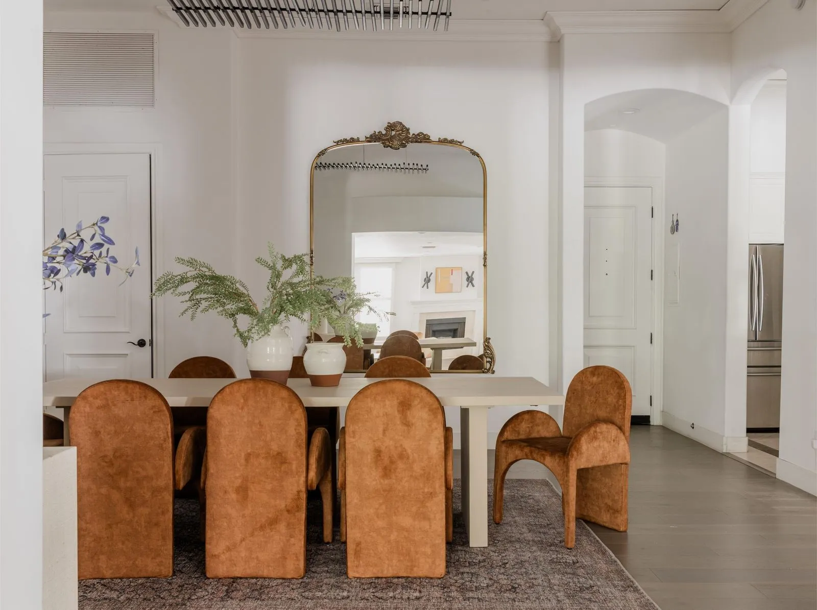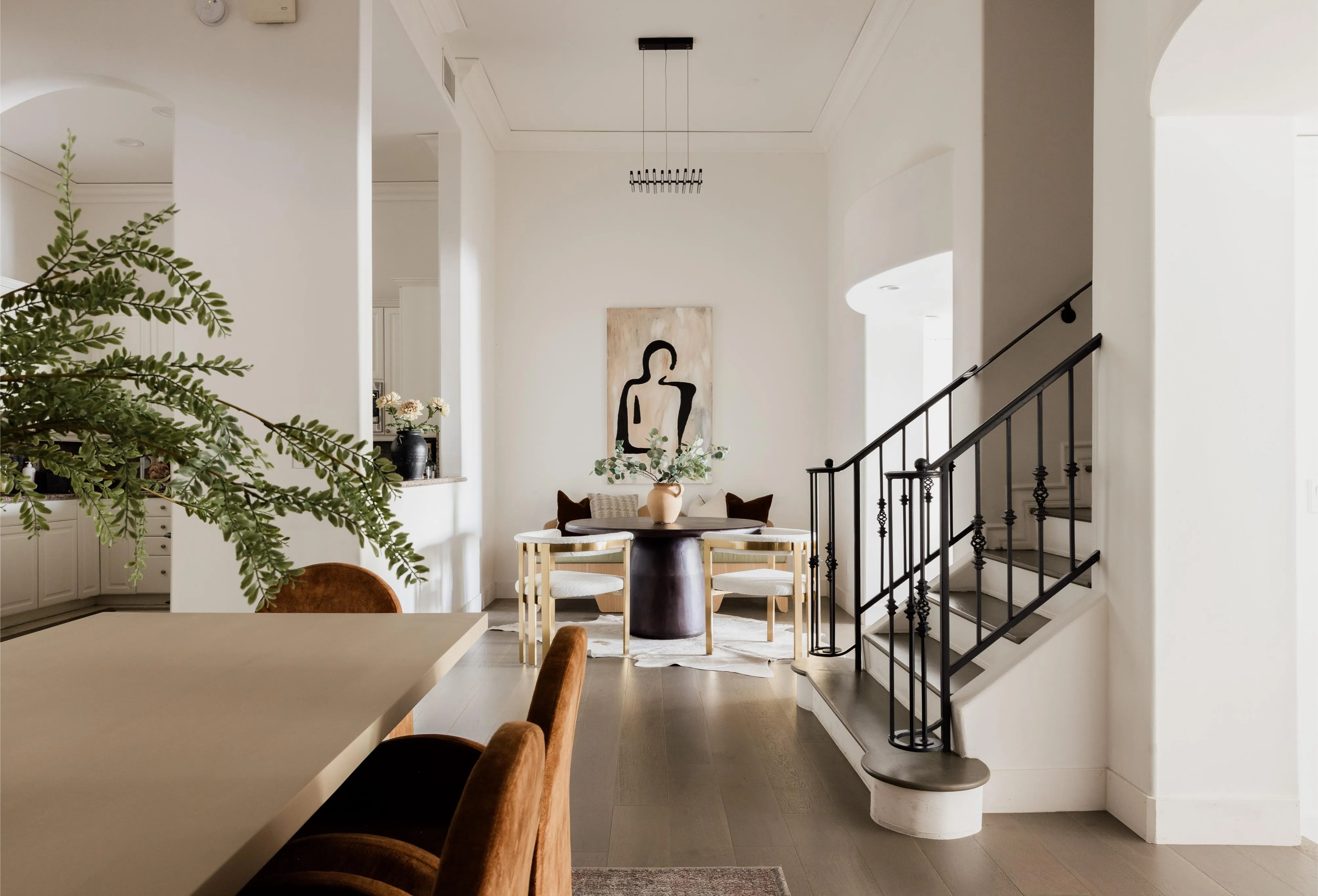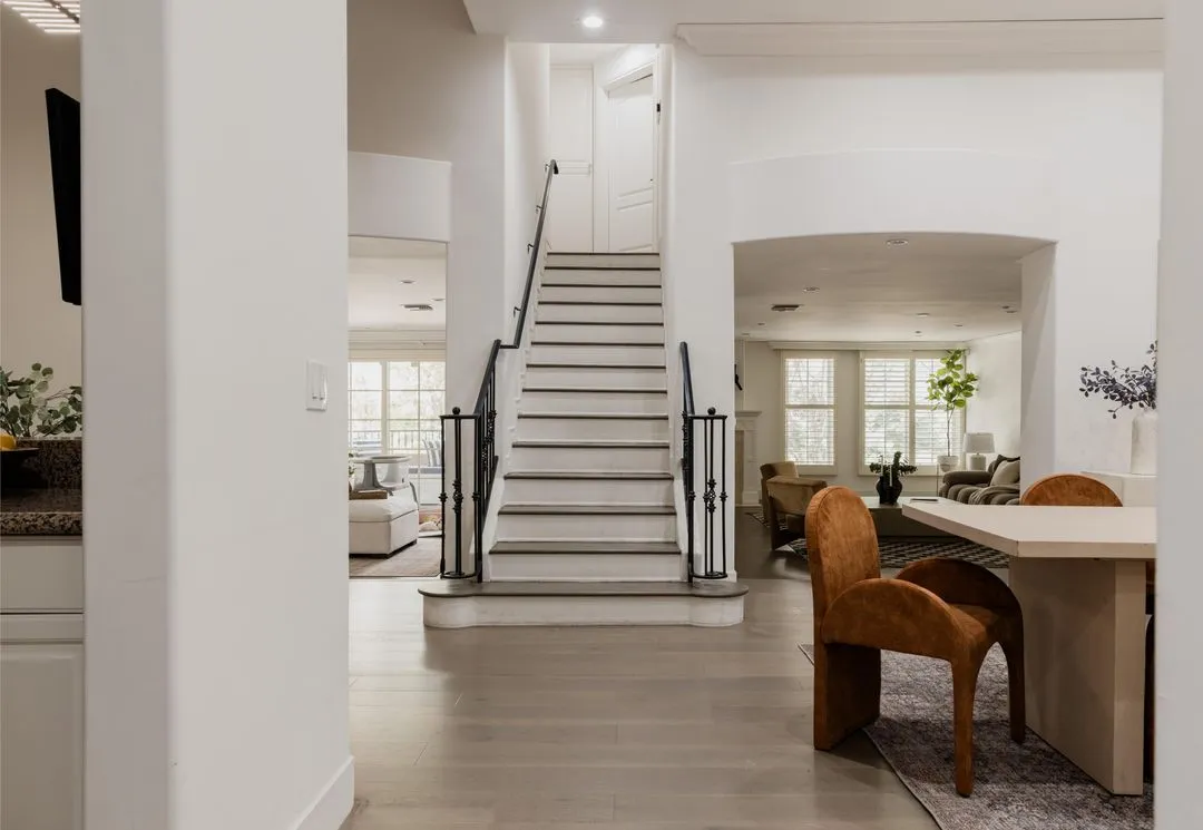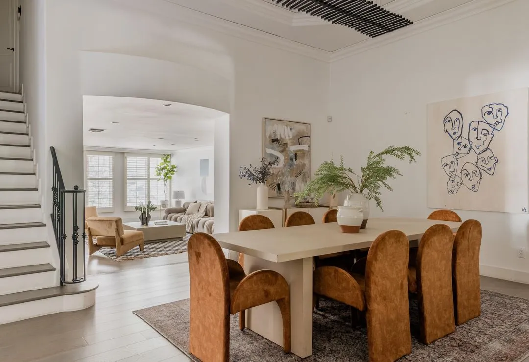 Move-in ready with explosive volume, major art walls and 14 ft ceilings are just the start for this sophisticated and airy townhouse in Beverly Hills 90210. Modern, yet tasteful design is thoughtfully considered with wide-plank hardwood and stone floors throughout. A major dining room is a stunning centerpiece usually found in a $10MM+ home. A chef's kitchen is outfitted with stainless steel appliances, white cabinetry with granite connecting to a formal dining area and a versatile office/breakfast area. A very large living room features a fireplace and full wet bar leading into an adjacent den which opens to a private balcony. Upstairs, both primary and guest bedrooms are en-suite with walk-in closets. The primary offers a private balcony, seating alcove, designer bathroom, dual vanities, and large walk-in closet. Additional conveniences include a third bath (powder) on the main level, full laundry room, and THREE (side x side) parking spaces. This newer building has the intimate feel of a chic NYC co-op, along with an extremely reasonable HOA which includes EQ. Located in the heart of the Beverly Hills world-class shopping and dining, along with the unparalleled lifestyle in one of the world's most coveted neighborhoods.