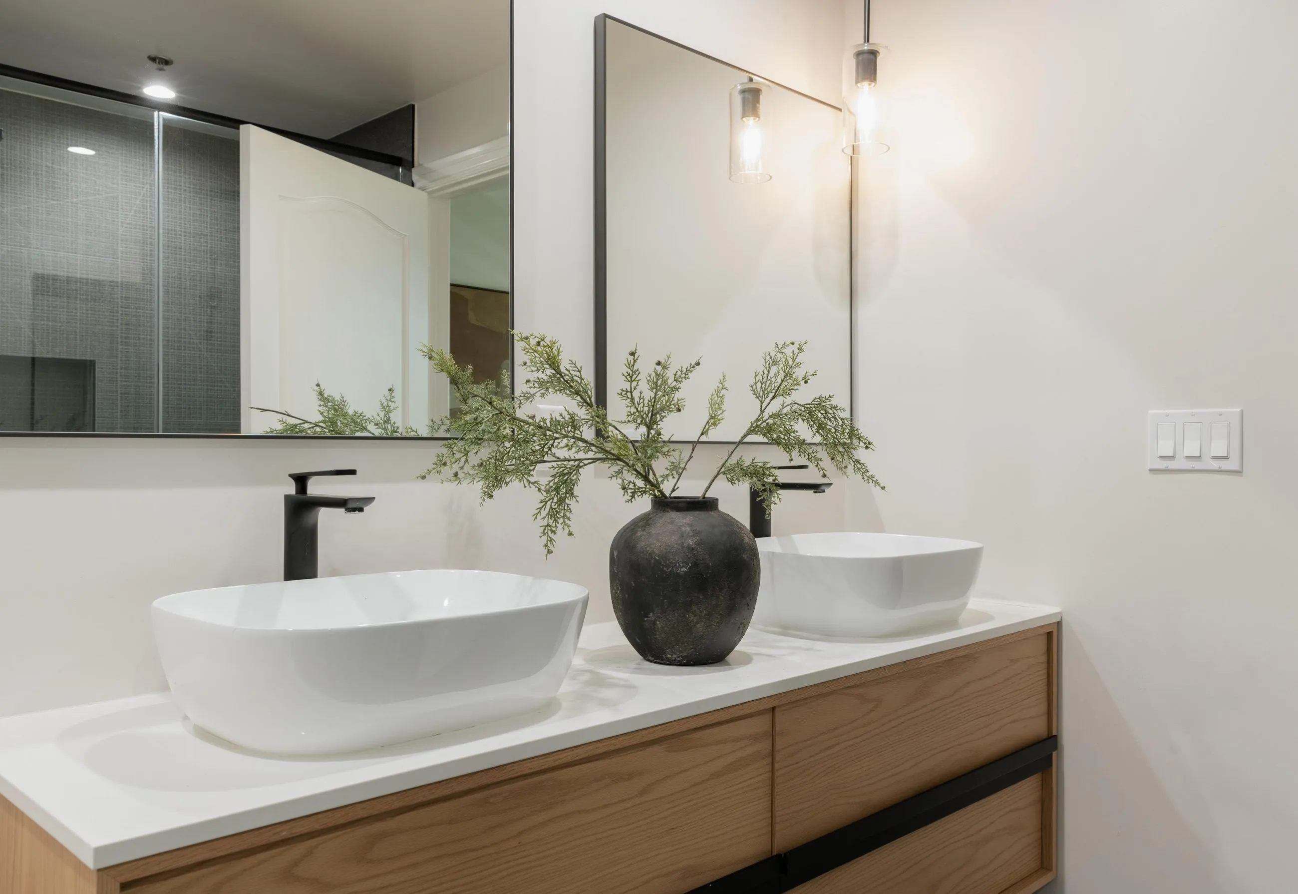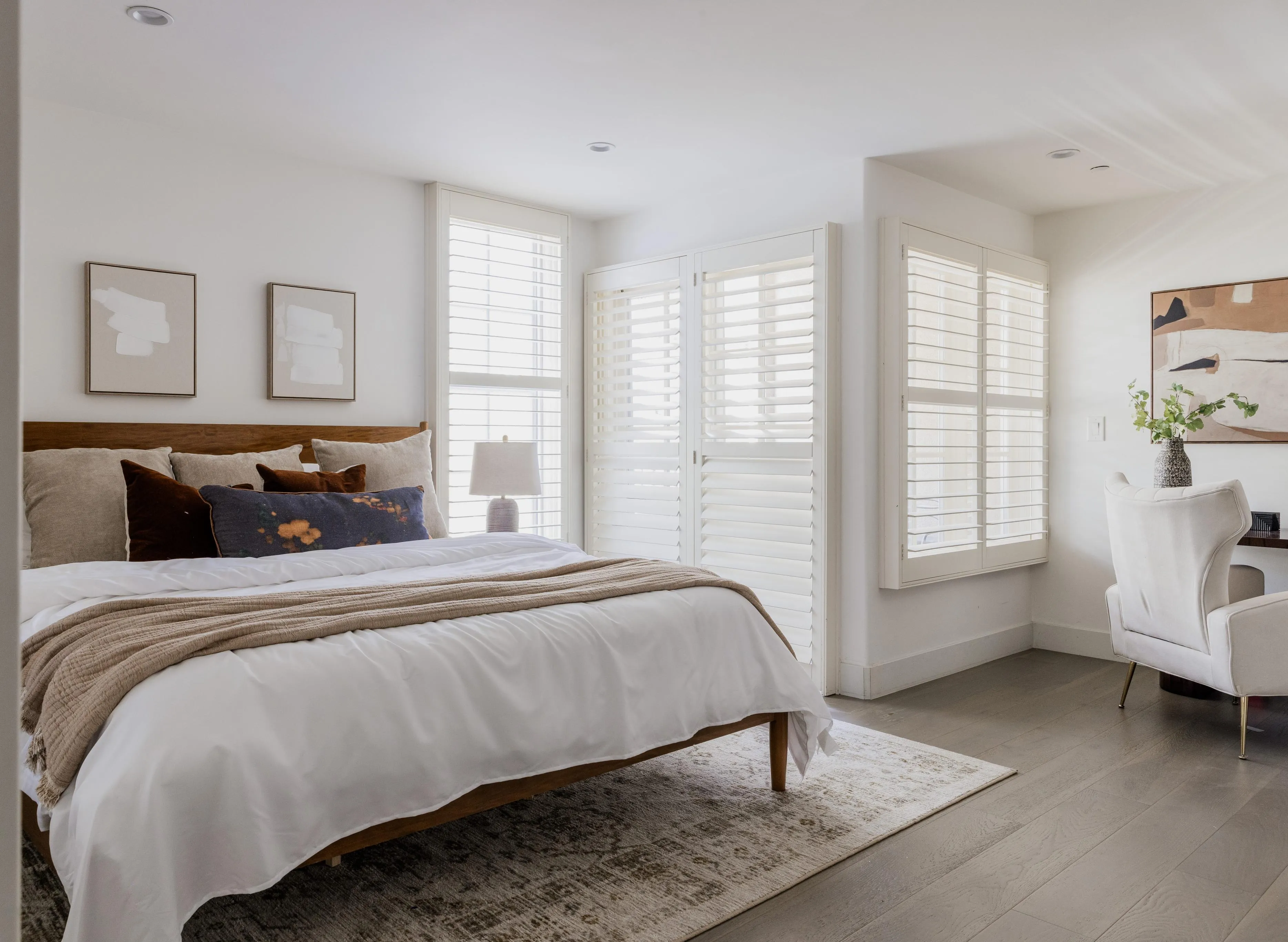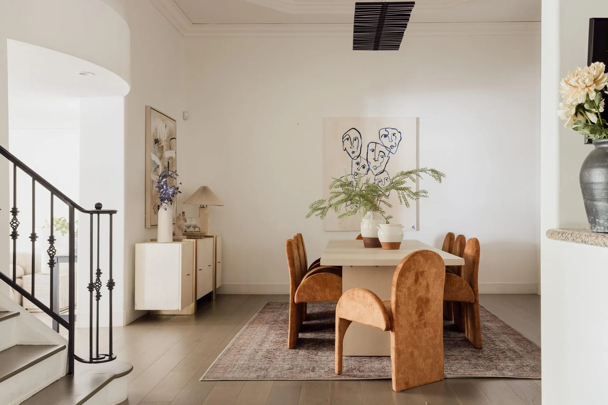 Move-in ready with explosive volume, major art walls and 14 ft ceilings are just the start for this sophisticated and airy townhouse in Beverly Hills 90210. Modern, yet tasteful design is thoughtfully considered with wide-plank hardwood and stone floors throughout. A major dining room is a stunning centerpiece usually found in a $10MM+ home. A chef's kitchen is outfitted with stainless steel appliances, white cabinetry with granite connecting to a formal dining area and a versatile office/breakfast area. A very large living room features a fireplace and full wet bar leading into an adjacent den which opens to a private balcony. Upstairs, both primary and guest bedrooms are en-suite with walk-in closets. The primary offers a private balcony, seating alcove, designer bathroom, dual vanities, and large walk-in closet. Additional conveniences include a third bath (powder) on the main level, full laundry room, and THREE (side x side) parking spaces. This newer building has the intimate feel of a chic NYC co-op, along with an extremely reasonable HOA which includes EQ. Located in the heart of the Beverly Hills world-class shopping and dining, along with the unparalleled lifestyle in one of the world's most coveted neighborhoods.
