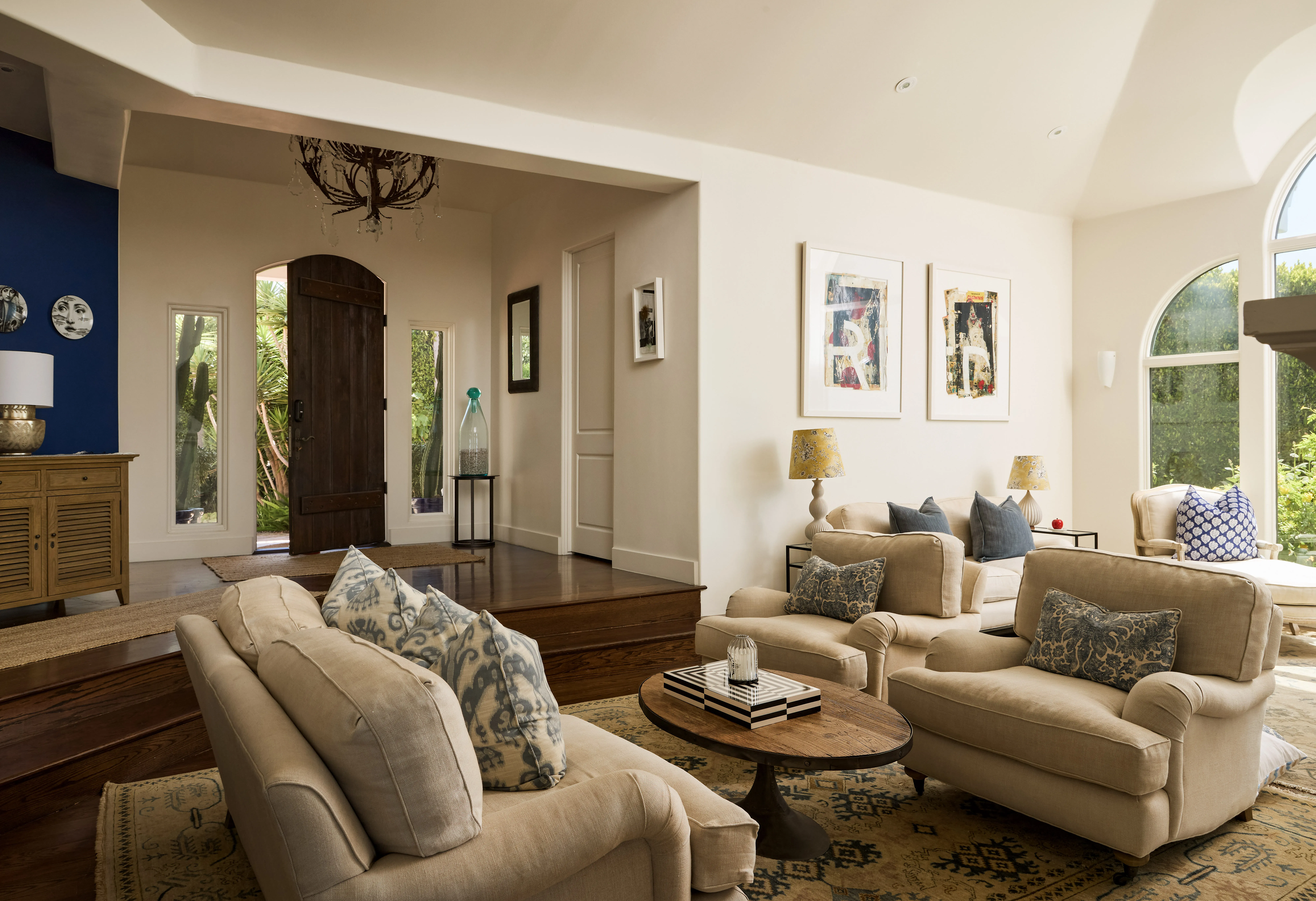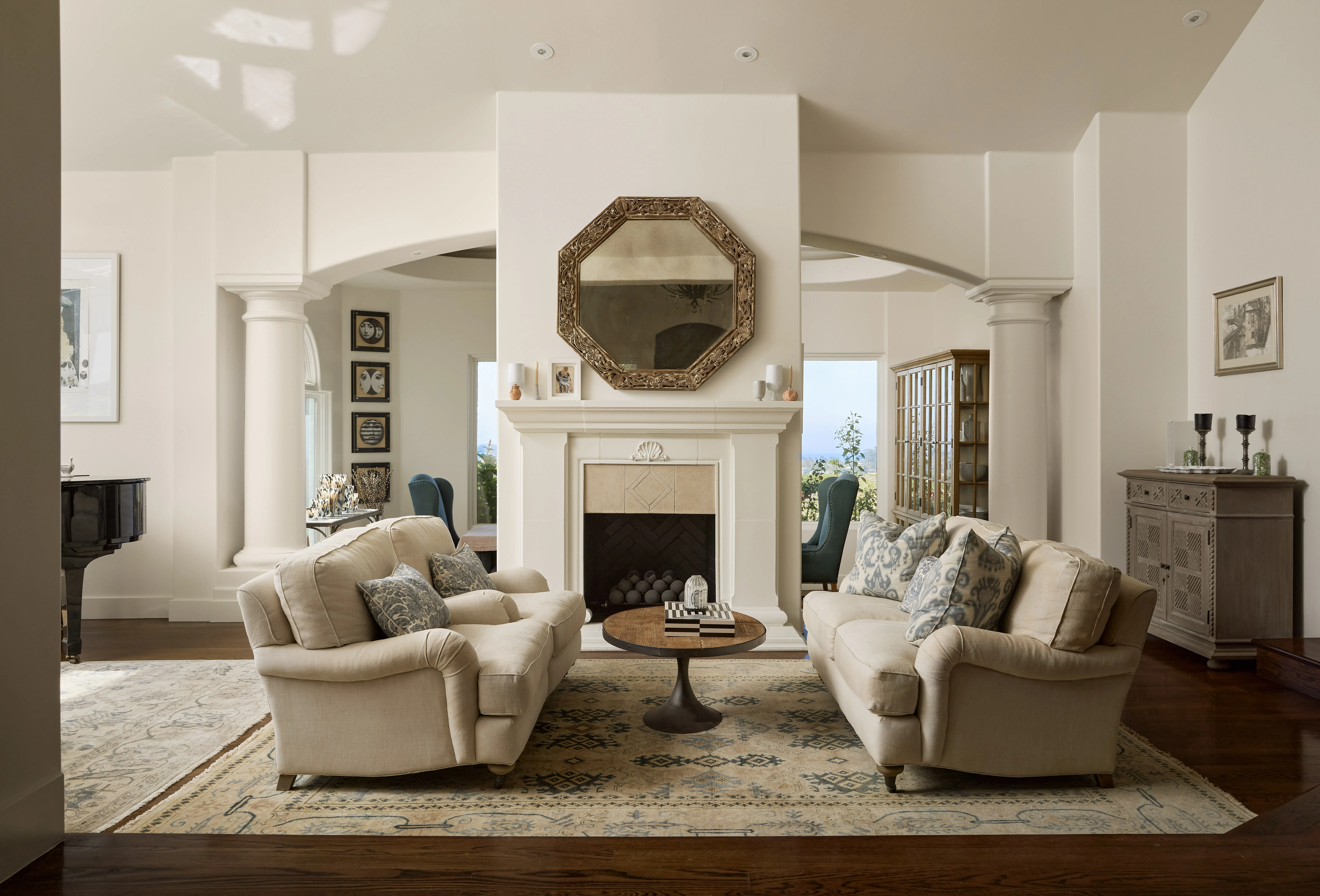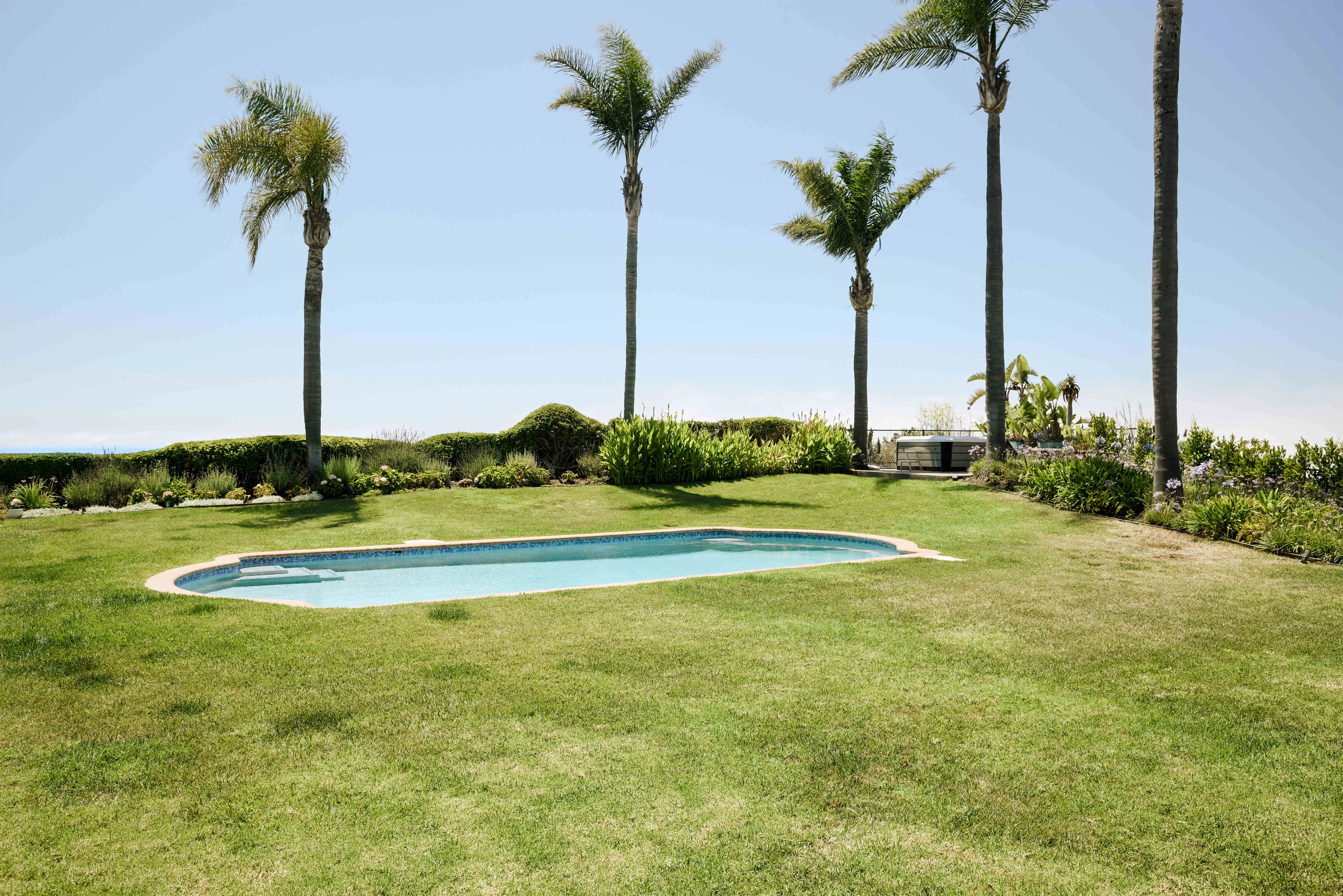 Tucked behind gates at the end of a long, privacy hedge-lined driveway, 6045 Galahad sits on over half an acre of mostly level grounds with a prime vantage above Malibu’s iconic Point Dume. Nearly 200 degrees of Pacific ocean views take in the coves of Point Dume and the secluded sands of Little Dume—known for their clear waters, rugged cliffs, and memorable surf. A quick golf cart ride to the beach, this modern Mediterranean property features a large flat pad with a pool framed by panoramic ocean vistas, a motor court for up to eight cars, and a three-car garage. Inside, 5 ensuite bedrooms (4 up/1 down) a dedicated large office, a dedicated theater room, with light-filled, voluminous social zones opening to terraces, a lighted pickleball court, and manicured lawns around a large pool —perfectly designed for the idyllic California coastal lifestyle.