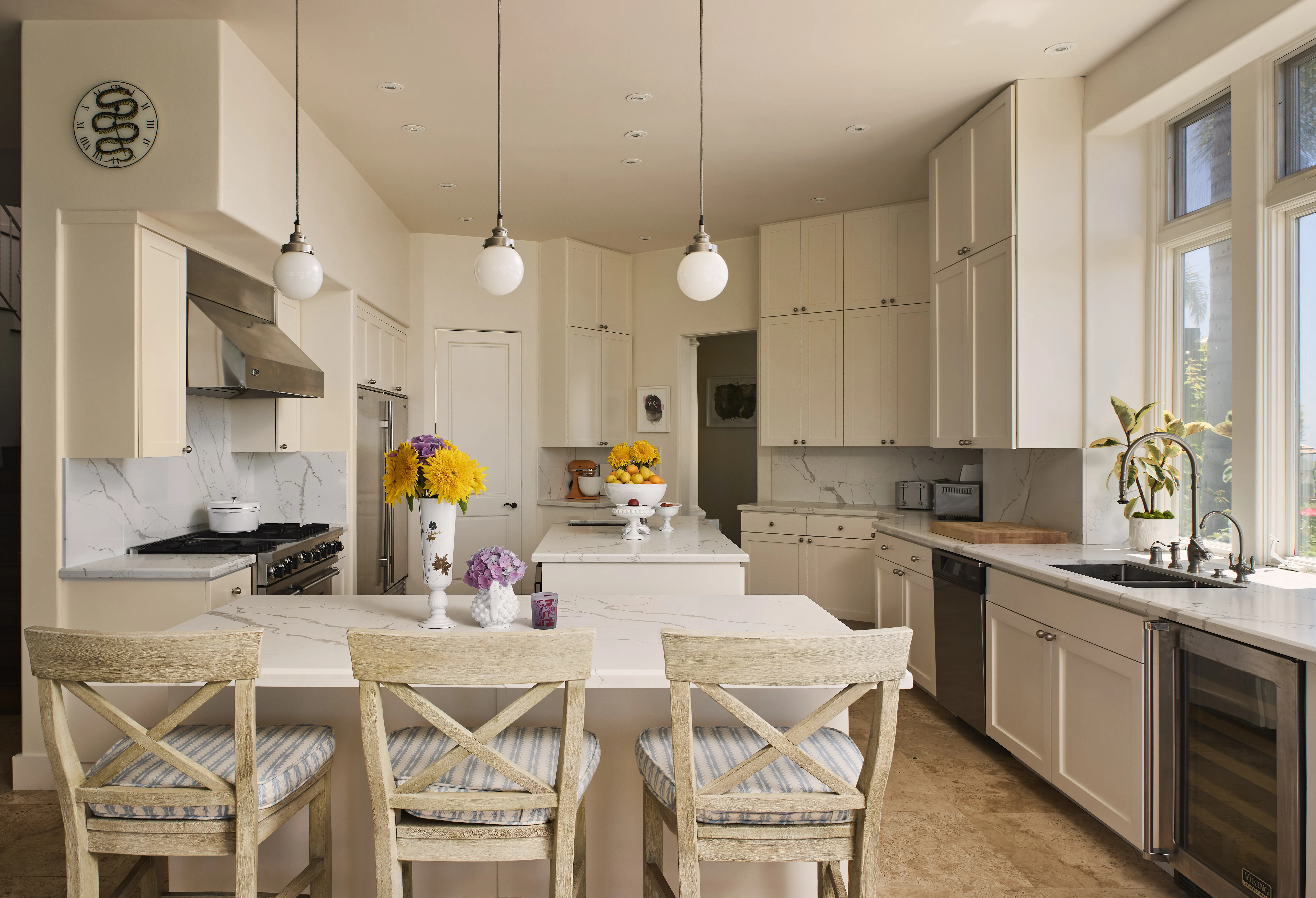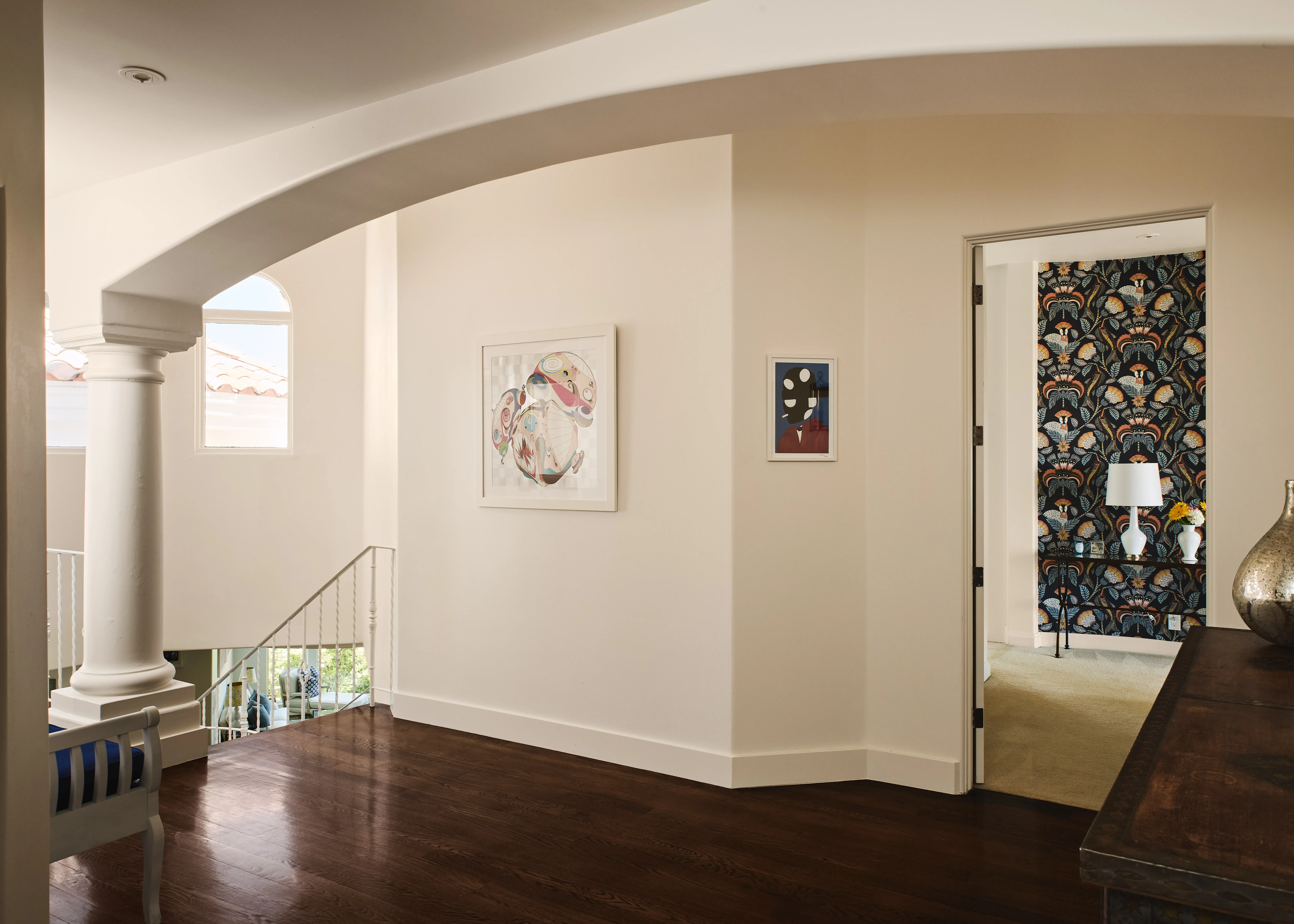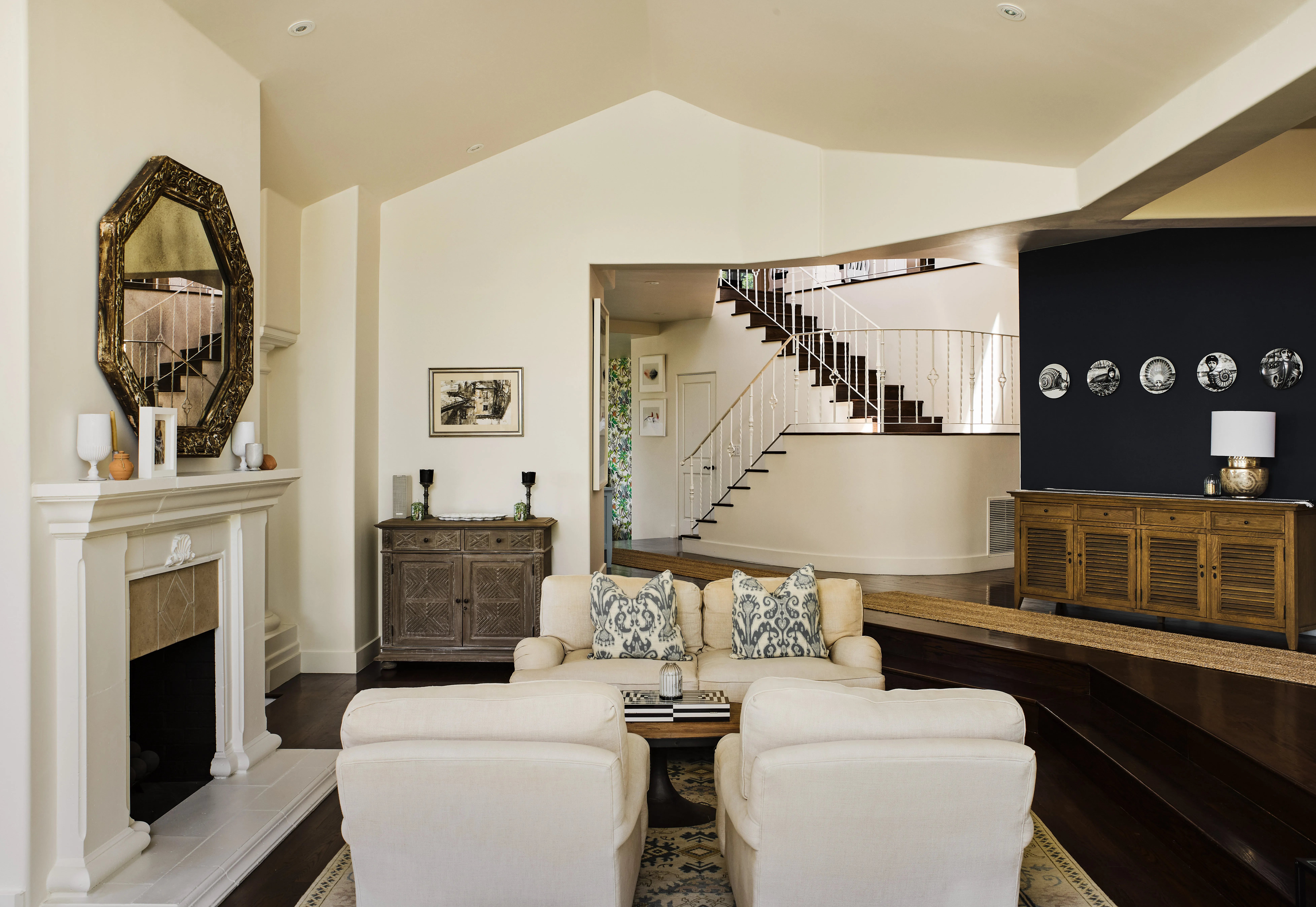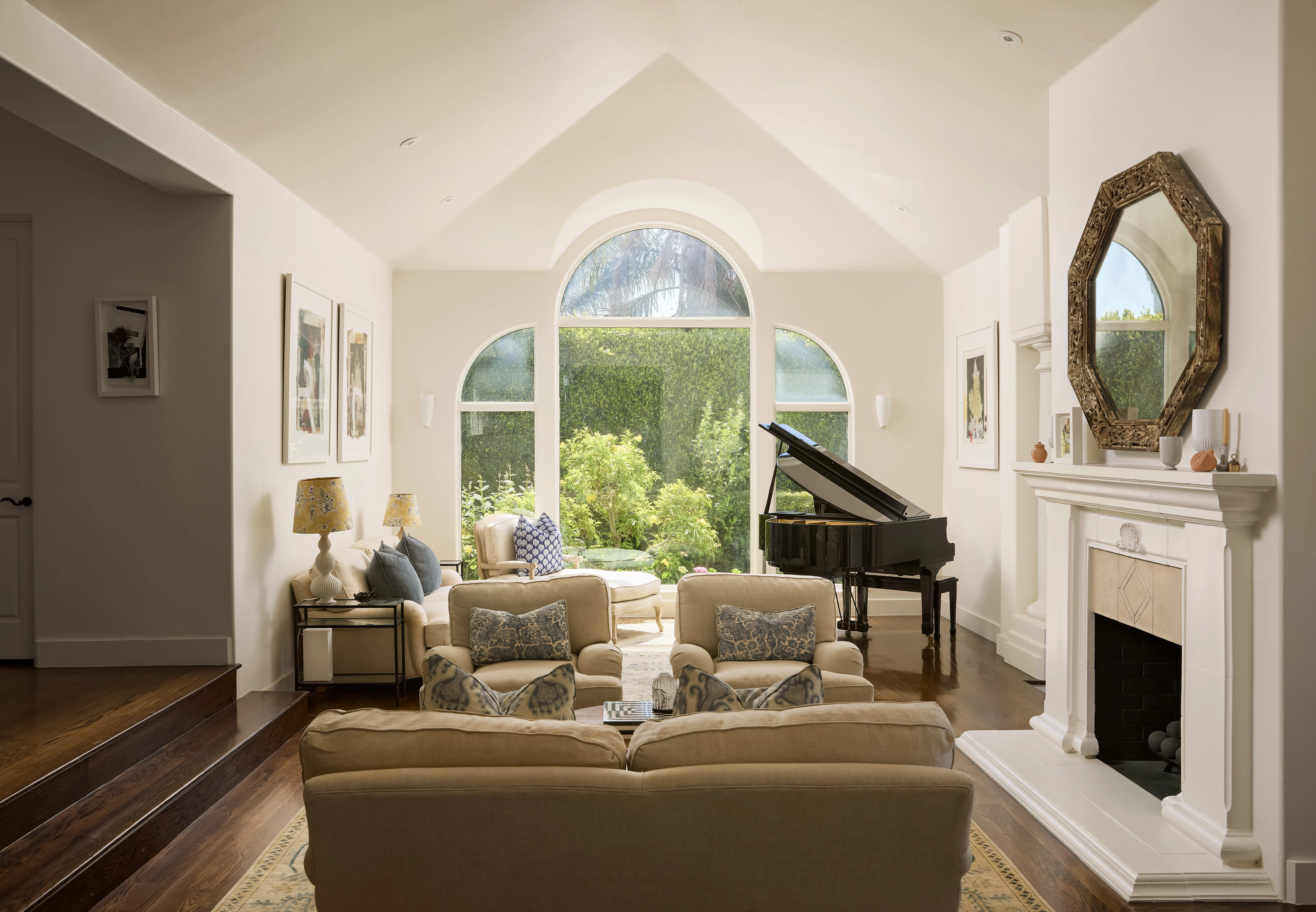Tucked behind gates at the end of a long, privacy hedge-lined driveway, 6045 Galahad sits on over half an acre of mostly level grounds with a prime vantage above Malibu’s iconic Point Dume. Nearly 200 degrees of Pacific ocean views take in the coves of Point Dume and the secluded sands of Little Dume—known for their clear waters, rugged cliffs, and memorable surf. A quick golf cart ride to the beach, this modern Mediterranean property features a large flat pad with a pool framed by panoramic ocean vistas, a motor court for up to eight cars, and a three-car garage. Inside, 5 ensuite bedrooms (4 up/1 down) a dedicated large office, a dedicated theater room, with light-filled, voluminous social zones opening to terraces, a lighted pickleball court, and manicured lawns around a large pool —perfectly designed for the idyllic California coastal lifestyle.