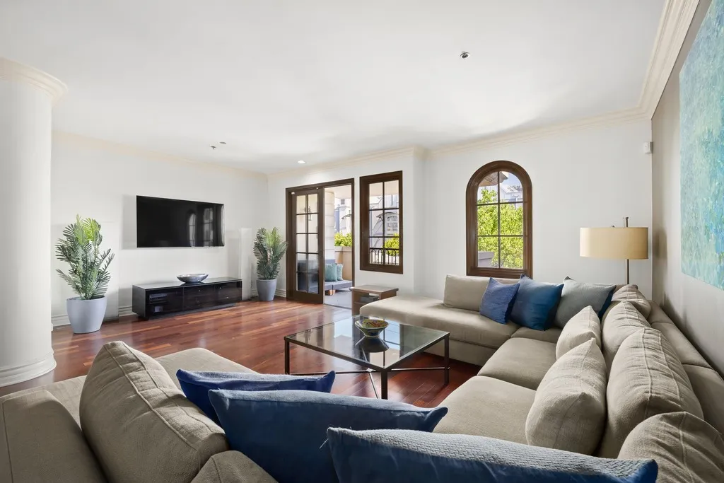 Situated on one of the most coveted streets in the Melrose Place/West Hollywood area, sophisticated luxury condominium offers timeless elegance and modern convenience in a boutique building. Boasting a spacious open floor plan with dramatic archways, curved walls, soaring ceilings, and designer hardwood floors, the home is thoughtfully designed for both entertaining and everyday living. The gourmet kitchen features sleek granite counters and stainless-steel appliances, flowing effortlessly into the oversized balcony, perfect for al fresco dining or evening gatherings. Additional highlights include custom built-ins, an in-unit washer and dryer, two dedicated parking spaces, extra storage, and guest parking. Located steps from world-class dining and shopping on La Cienega, Melrose, and Santa Monica, this condo epitomizes refined urban living in the heart of West Hollywood.